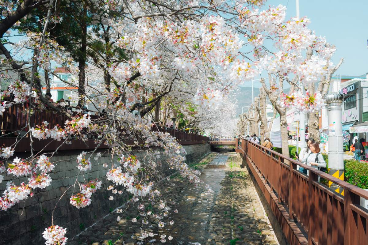 Yeojwacheon est une rivière située à Jinhae-gu, dans la ville de Changwon, en Corée du Sud. Connue pour son tunnel de cerisiers en fleurs au printemps, elle constitue l’un des lieux les plus emblématiques du festival Jinhae Gunhangje. Le long de ses berges, une promenade ponctuée de ponts thématiques permet de longer la rivière dans un cadre aménagé.